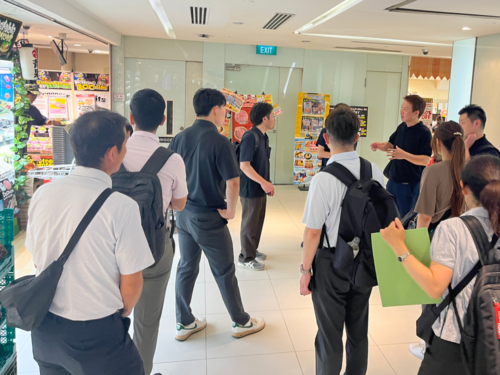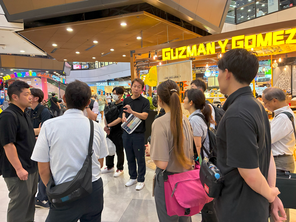 Food Japanの会期前日、5社の皆さんとともにシンガポールの市場視察を実施いたしました。シンガポールの『庶民の台所』であり、多国籍な屋台料理が手頃に楽しめるホーカーセンターをはじめ、ターゲット層が異なる3つの主要モール(高級志向・アッパーミドル・ファミリー層)を訪問。 ホーカーでの試食を通じた味覚嗜好の把握や、各モールの出店傾向分析を行い、シンガポールの多層的な食品市場と食文化について理解を深めました。