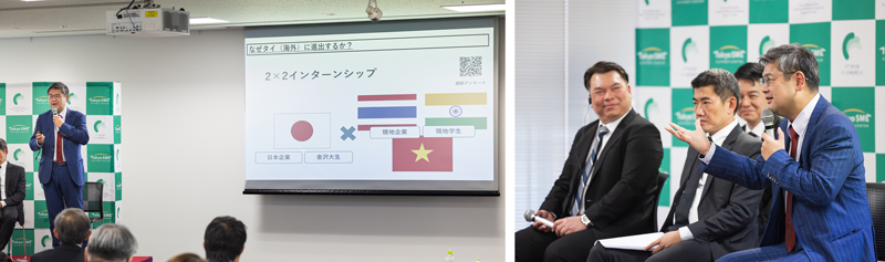 ディスカッションを通じて、松島教授が冒頭に掲げた「両利きの経営」の重要性が改めて浮き彫りになりました。既存事業を持続させながら、自社の知見を別分野へ展開する姿勢です。「人手も時間も足りない」という企業に向けて紹介された金沢大学の「2x2インターンシップ」は、学生が1年間企業に派遣され、タイやインド等で海外事業の可能性を探るプロジェクトです。多忙な中小企業が「最初の一歩」を踏み出すための強力な後押しとなるでしょう。