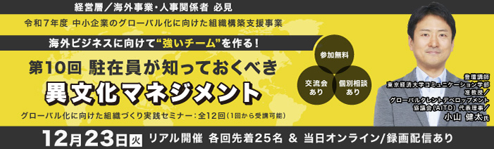 1社ごとに異なる海外展開のカタチに・・・ 東京都中小企業振興公社 販路・海外展開支援課では、都内中小企業の海外展開を丁寧にサポートします 海外展開支援ポータルサイト グローバル化に向けた組織づくり実践セミナー 第11回:低コストで叶う海外進出 「公的支援を味方に!中小企業がどうすれば直接投資による海外進出が叶うか!」 グローバル化に向けた組織づくり実践セミナー 第10回:駐在員が知っておくべき異文化マネジメント 「駐在員が身に着けておくべき異文化適応力」をお教えします。 貿易に関する基本的な概念から始め、取引の流れや重要な手続き、国際規制や通関手続きなど、貿易実務に必要な知識を学べる2日間のオンライン講座 タイ工業省や東京都立産業技術研究センター バンコク支所等と連携し、都内中小企業のタイをはじめとするASEAN諸国でのビジネス拡大を現地で支援しています ASEANでの現地ビジネス実施のための拠点設置や、生産委託・業務委託等による各種海外連携を支援します 初めての方 目的から探す 支援のご紹介 海外取引の相談をしたい グローバル組織構築に向けた 専門家サポート 新着情報・プレスリリース 一覧へ 2025.12.11 【コラム:海外ワンストップ通信更新】知らないと損する!貿易取引の基本「Incoterms(インコタームズ)」をやさしく解説 2025.12.05 海外販路開拓支援企業一覧を更新しました。 2025.11.25 【成功事例更新】 初の海外展示会でタイ進出を加速 2025.11.12 【募集開始!】世界への入口”羽田”を知ろう!羽田税関・空港施設見学講座<R7年度貿易実務スキルアップ講座> 2025.11.12 【募集開始!】日タイ産業連携の新展開!R7海外展開シンポジウムーバイオエコノミーと地域資源からの挑戦 コラム ビジネスレポート コラム 海外ワンストップ通信 コラム 支援レポート メールニュース購読