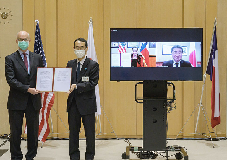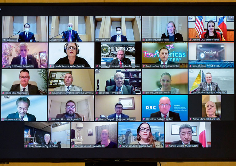 署名式は、新型コロナウイルス感染症の影響を受け、オンラインで行われました。立会人としてアラン・ターリー在日米国大使館商務担当公使及び村林弘文在ヒューストン日本国総領事が出席し、両者が見守る中、坂本雅彦東京都産業労働局長、アドリアナ・クルーズテキサス州経済開発観光局長が覚書に署名しました。