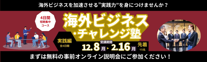 海外ビジネスを加速させたい、海外ビジネス経験者の方必見!