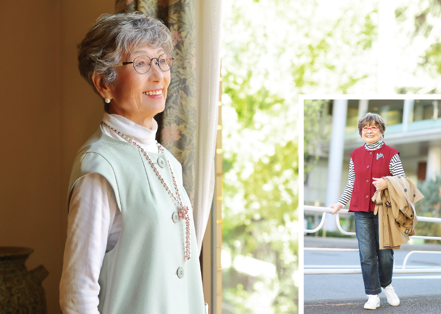 加齢による体型変化と体温調節機能低下のカバーアイテムとして、高齢女性の必需品である羽織もの、その中でも通年商品として需要の高いベストを選びカラー展開(つやのふくは6色)。丁寧なヒアリングと試着会を重ね、顧客のご要望をデザインに落とし込み商品開発しました。とくに背面立体裁断、ゆったりアームホールを大きな特長とし、カラフルで着やすい服は、「こんなのが欲しかった」とご好評をいただいております。