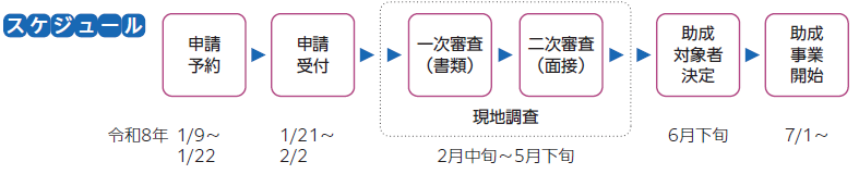 | 申請予約期間 | 令和8年1月9日(金)10時~1月22日(木)17時まで |